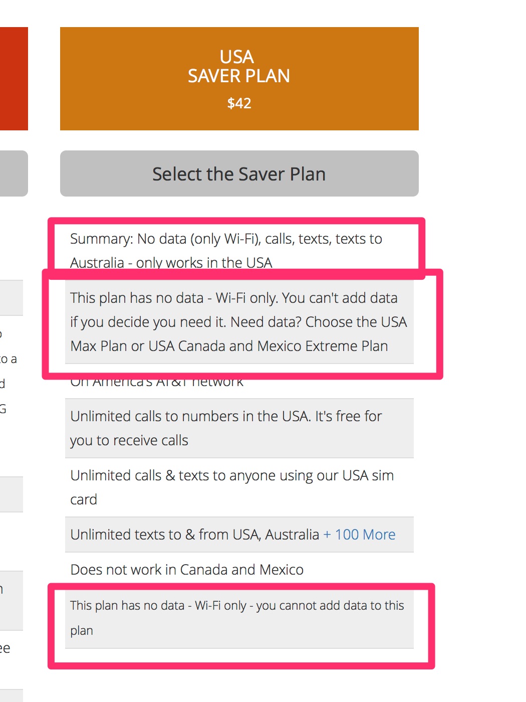 Want data? You'll need to either purchase the USA Canada and Mexico Max Plan or the USA Canada and Mexico Extreme Plan. Unused days of your USA Saver Plan are forfeited without refund.